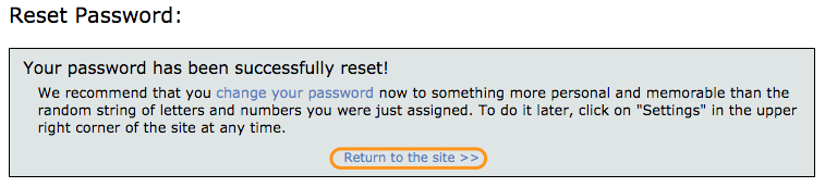Type in a new password of your choice – twice. We also require you to provide the current password to identify you and verify that it is you who are making the change. It’s easier to copy the current password from the reset password email and paste it in. As you can see, we take security very seriously.