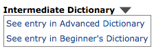 • Dictionary menu: This gives you the option to see the entry for the word you looked up in one of our other dictionaries, at a different level of writing.